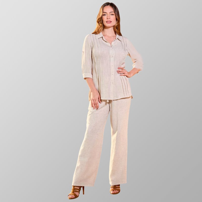 Blusa de manga tres cuartos con botones al frente, ideal para un look práctico y elegante.