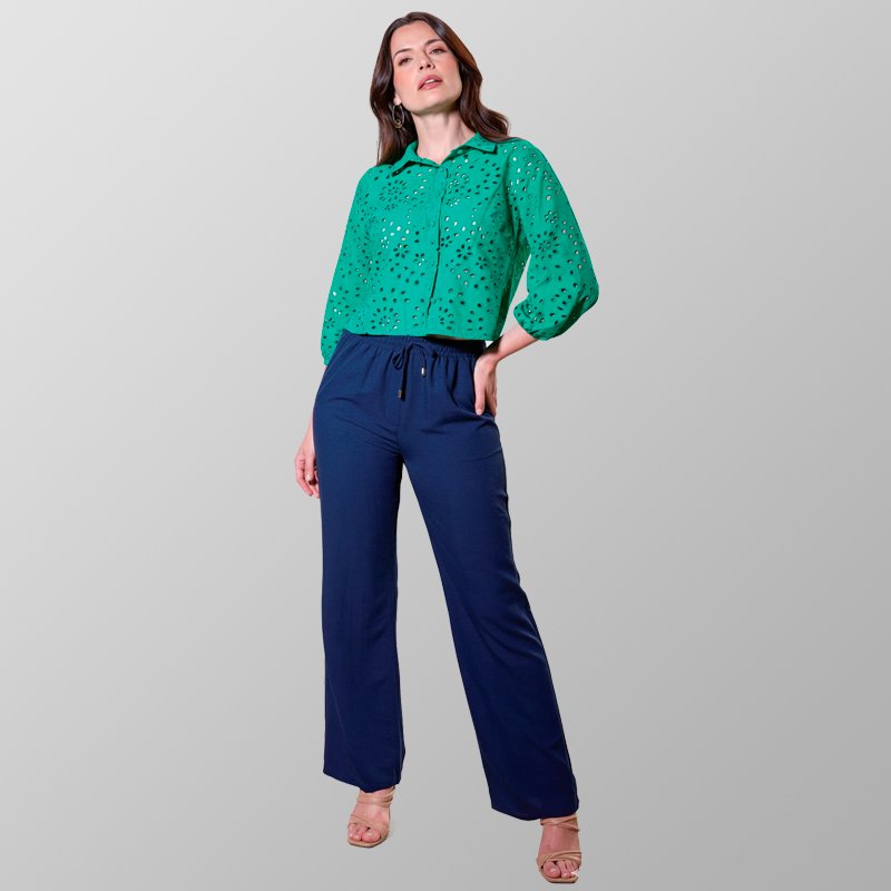 Blusa de manga larga con delicados detalles calados y botones al frente, que aportan un toque elegante y sofisticado.